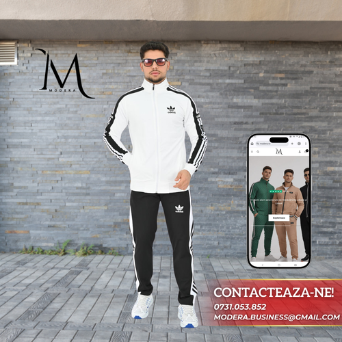 Trening Adidas - Alb cu Dungi Negre
